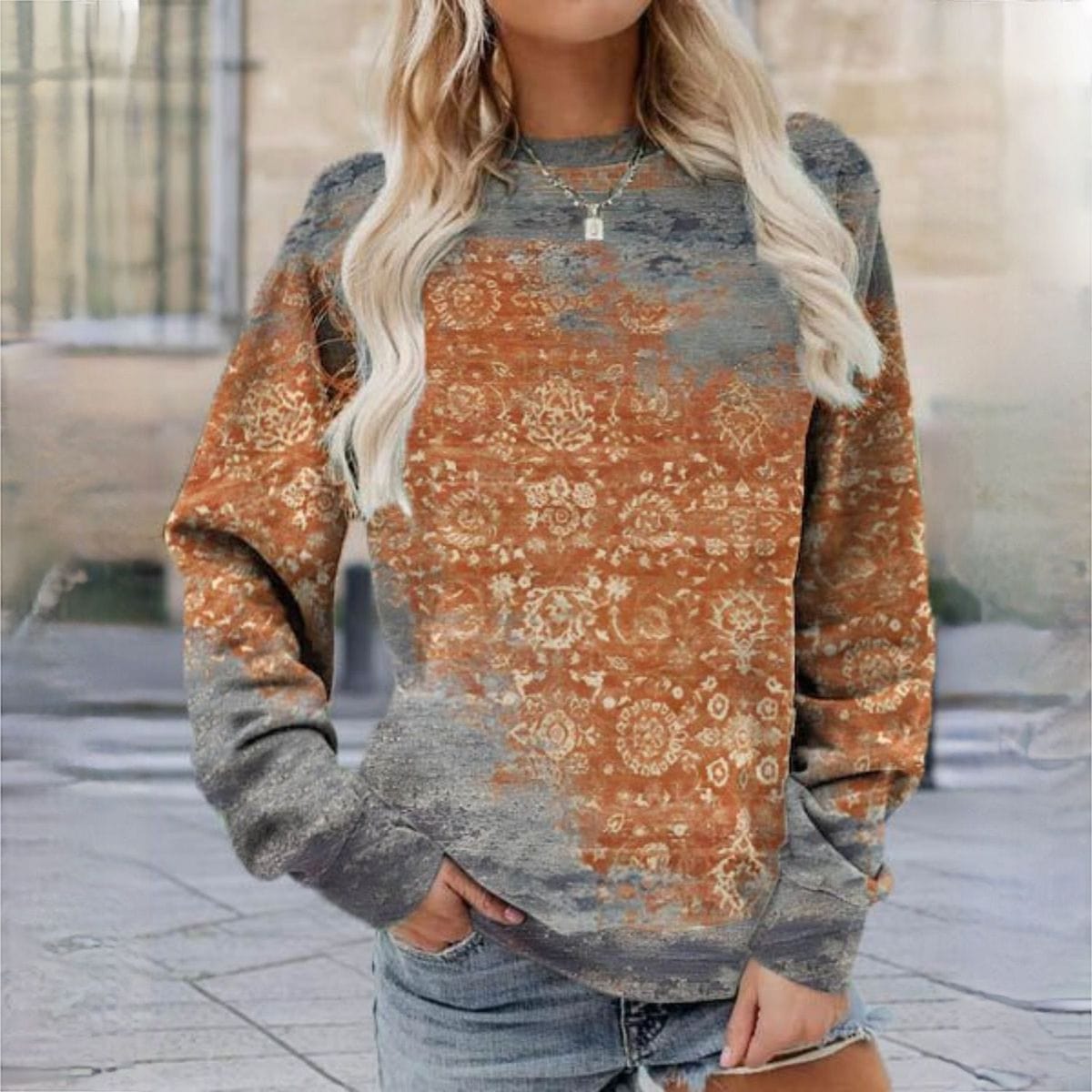 CD | Lavigne - Pulover maro cu imprimeu mandala